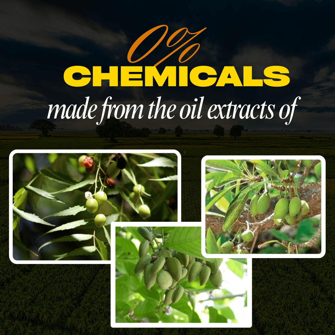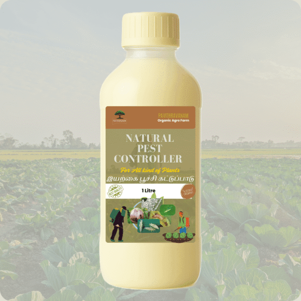 A 100% natural pest Controller prepared from Neem oil, Pungam oil, and Iylupai oil extracts.