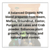 A powerful organic NPK fertilizer made from natural oil cakes and bio-mineral ingredients. Improves soil fertility, boosts plant growth, and enhances flowering with slow-release nutrients.